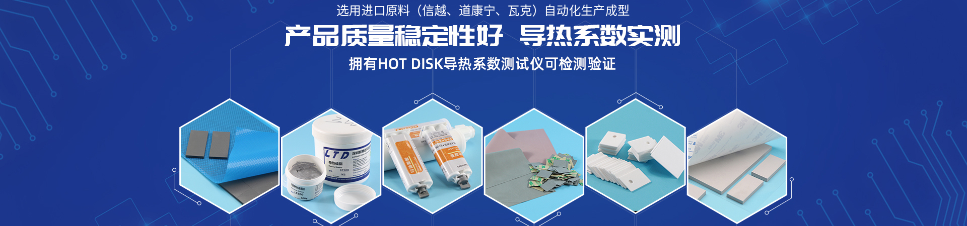 公司具有從原料配方、混煉、配色、攪拌、抽真空到硫化成形等一條龍生產能力。主要產品有:導熱硅膠片,導熱陶瓷片,導熱硅脂,導熱泥,導熱灌封膠,導熱雙面膠,導熱石墨膜等導熱絕緣材料。阻燃防火性能符合U.L 94V-0 要求,并符合歐盟SGS環保認證 及ROHS要求。可為手機、LED照明、電源、筆記本電腦,平板電腦、家電、網絡產品等 相關行業的客戶提供一站式導熱絕緣材料產品及散熱解決方案!